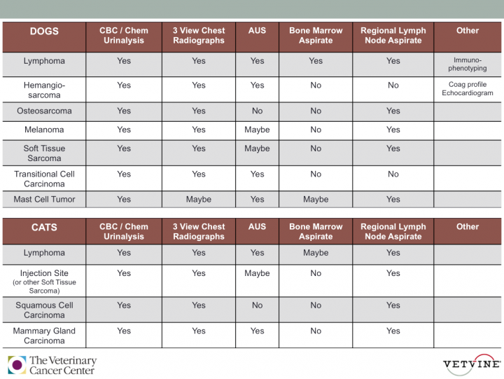 After a diagnosis of cancer is made, the staging of that patient's cancer is helpful for determining whether it has spread (metastasized) to other organs, or whether it is localized to the area of its origin. This information provides the veterinarian a comprehensive picture from which a prognosis and treatment options can be made that are individualized for that patient.