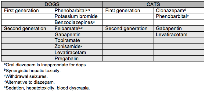 Common AEDs for Treatment of Epilepsy in Dogs and Cats