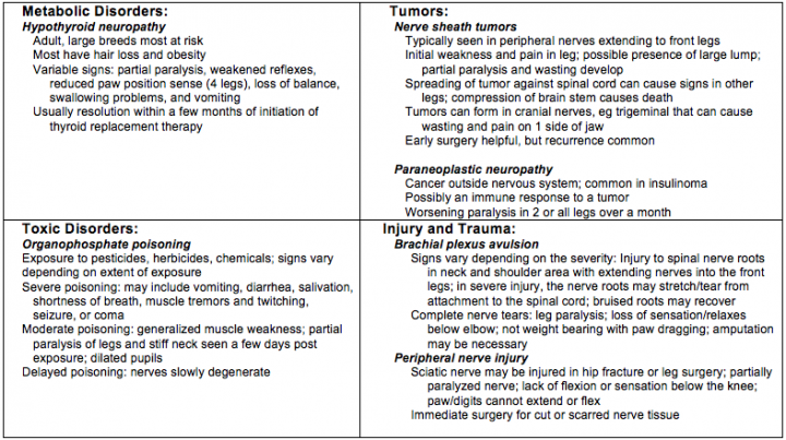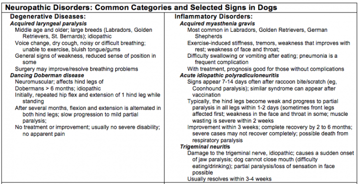 Table Source: Merck Manual Pet Health. Brain, Spinal Cord, and Nerve Disorders of Dogs. Accessed November 4, 2015.