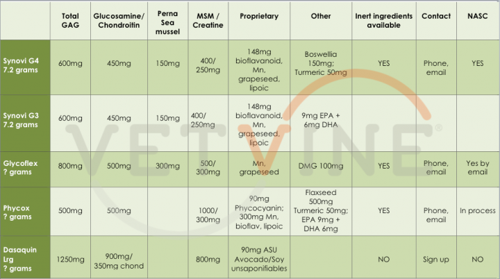 She also provided us with a very helpful resource that lists several commercially available nutritional supplements. This table provides a comparison of each product's ingredients (some of which were discussed in her presentation) as well as Company information (including whether the product has been tested by the National Animal Supplement Council - NASC).
