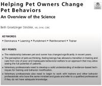 Veterinary professionals need to develop a solid understanding of evidence-based tech- niques for training and behavior modification.