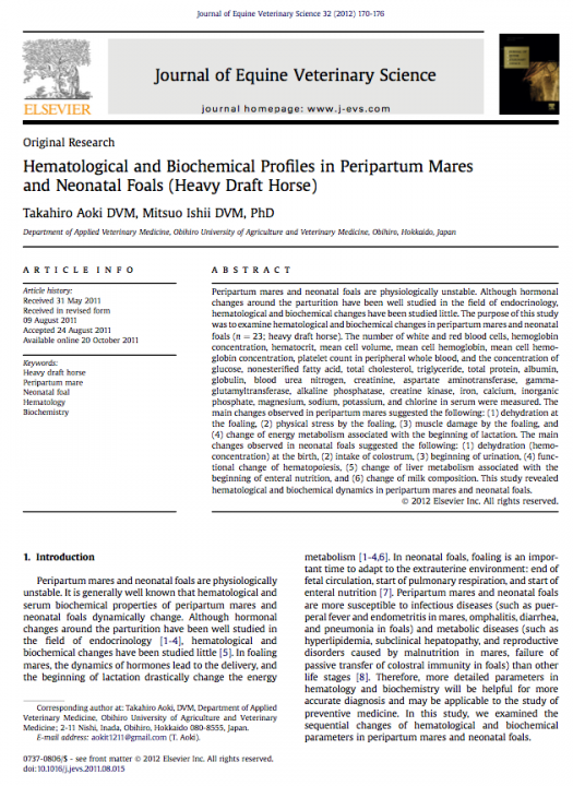 Hematological and Biochemical Profiles in Peripartum Mares and Neonatal Foals (Heavy Draft Horse)